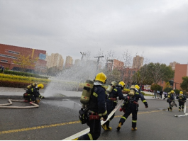 消防技能展示环节,消防员们身着全套灭火防护装备,以迅捷精准的动作完成水带铺设、接口连接、出水等一系列操作演示,其娴熟的技能与精准有力的喷水展示,赢得了现场师生的阵阵掌声与喝彩。