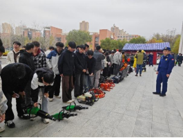 器材观摩与知识普及环节,同学们近距离接触了破拆工具、专业灭火器材等消防装备,消防员结合真实案例,深入讲解器材原理与使用方法,将抽象的安全知识转化为具象认知。同时,在宣传咨询台前,同学们踊跃参与消防安全知识问答,争相领取图文并茂的消防宣传手册和设计精巧的安全主题文创产品。